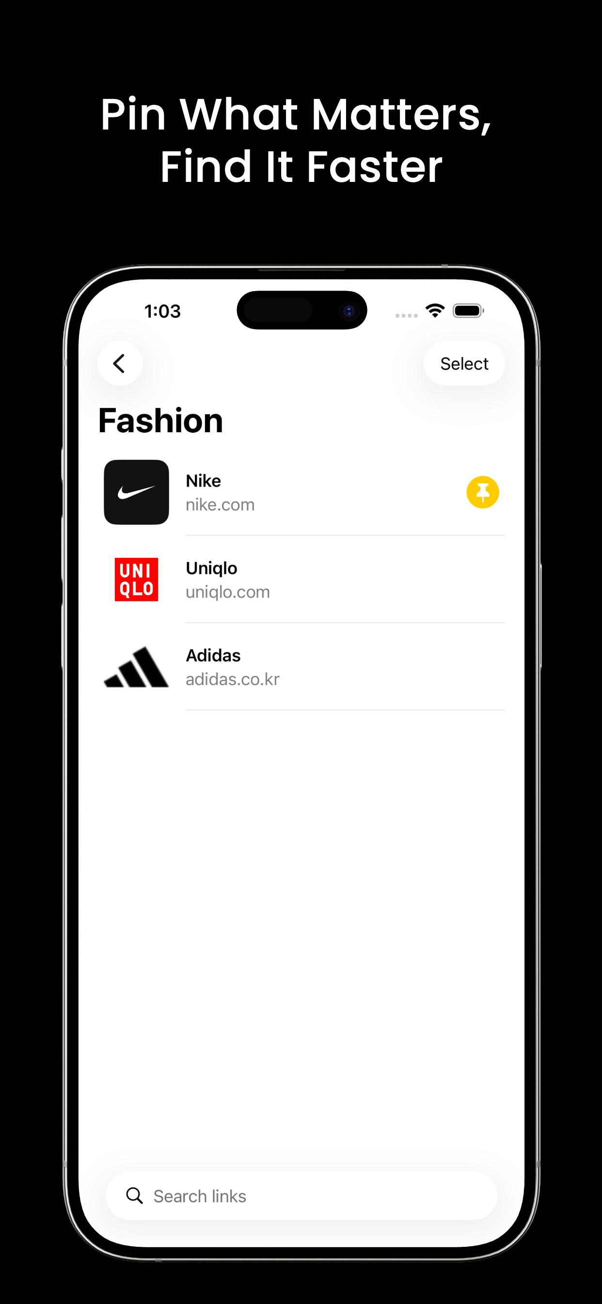Find any link quickly by title, URL, or notes