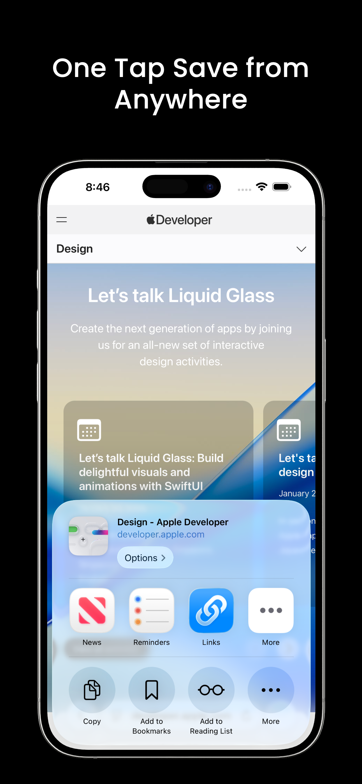 Use the Share Extension to save links from any app instantly